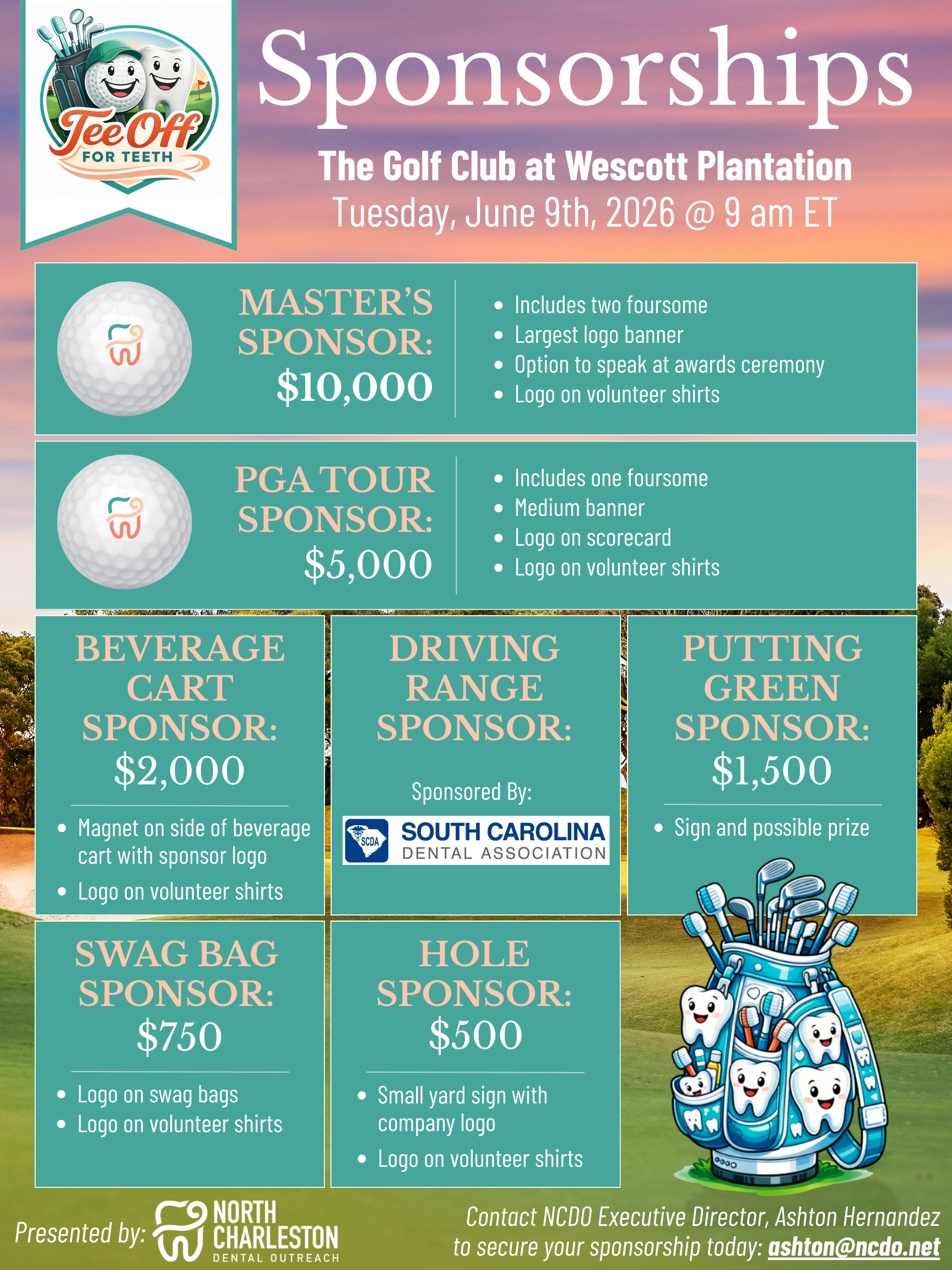 Join us for a shotgun start with Captain’s Choice where every swing supports healthier smiles!